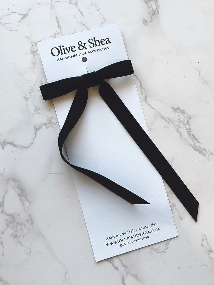 This elegant long tailed bow would be perfect for school or a special occasion.