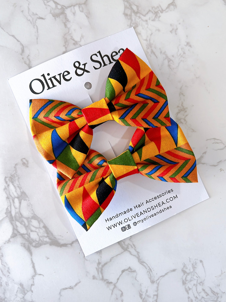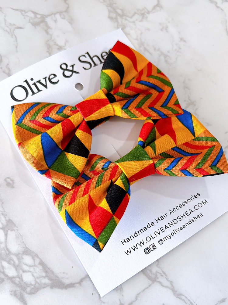 Kente pigtail hair bow set is made out of a traditional Ghanaian Kente print.