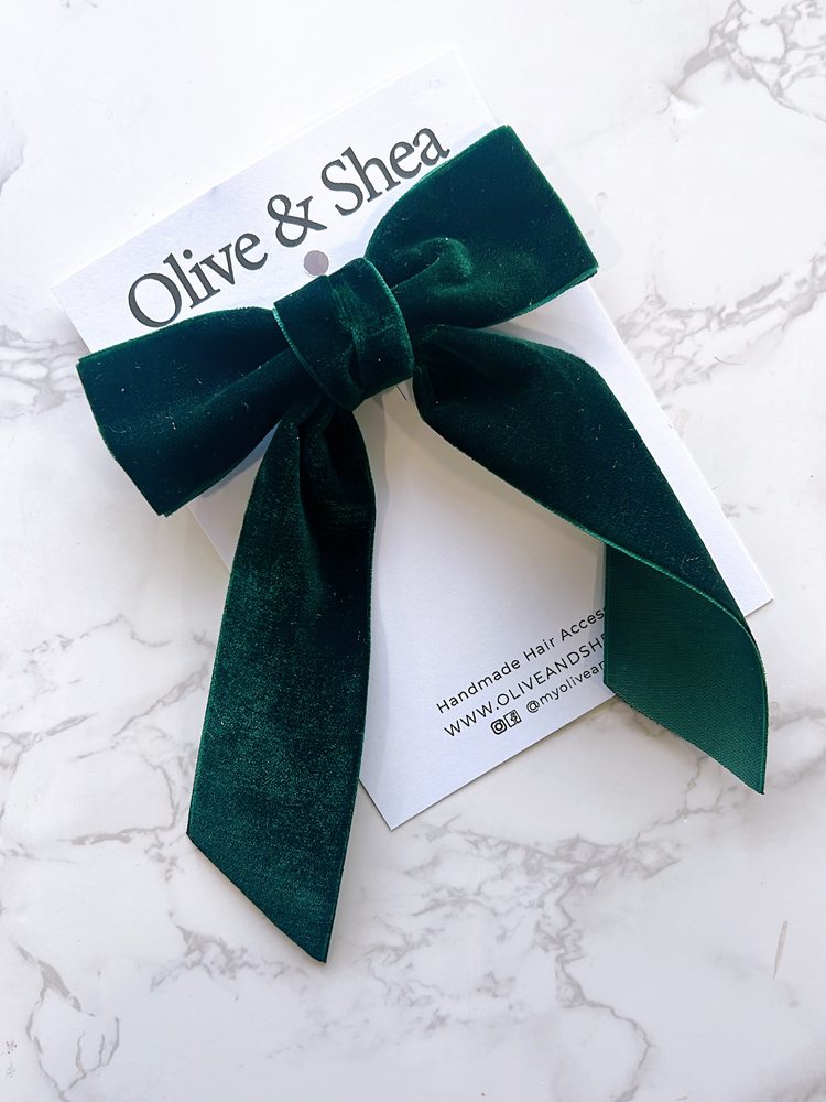 It measures approximately 5” bow with a 5” tail Secured with an alligator clip