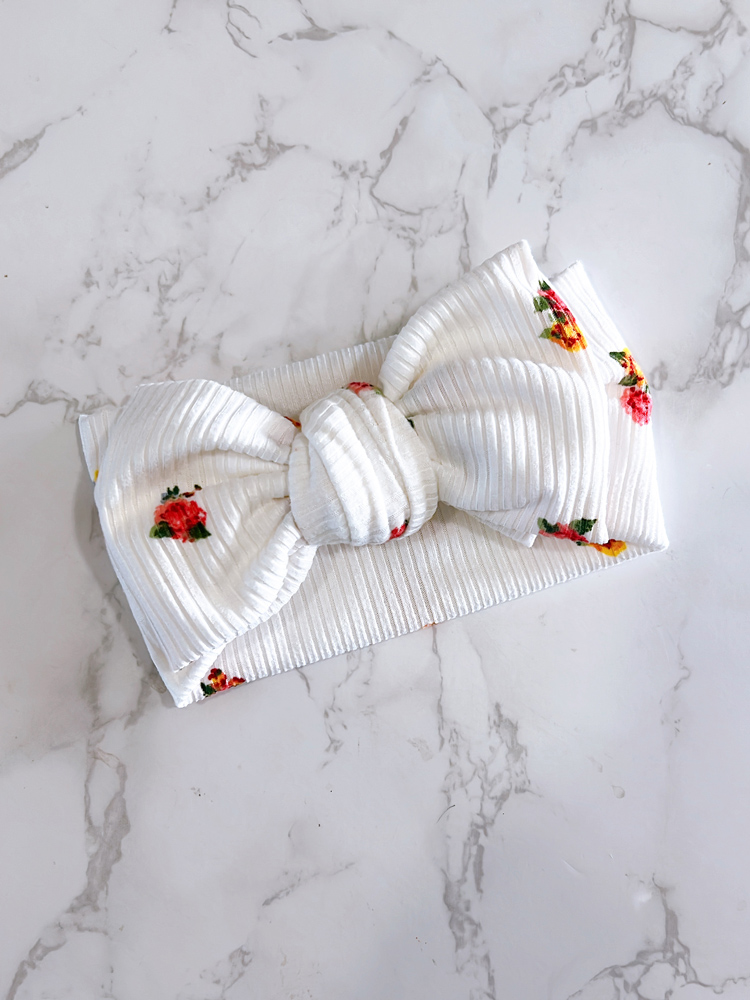 Soft floral themed baby headwrap. Fits most babies 0-12 months